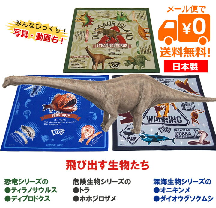 楽天市場 学研のアプリで飛び出すハンカチ 3点セット 恐竜 危険生物 深海生物 日本製 図鑑ライブ 動物グッズ 入園入学 プレゼントにも メール便で送料 無料 オリーブファクトリー